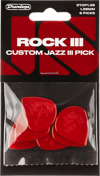 Le Rock III Custom Jazz III est un médiator pensé pour les guitaristes qui veulent de la précision avant tout. Son format type Jazz III est plus compact qu’un médiator standard : ça rapproche la prise de la pointe, ce qui donne un contrôle immédiat sur l’attaque. Résultat : tu gagnes en vitesse, en netteté, et en régularité — particulièrement utile en metal moderne, metalcore, hard rock ou rock technique.